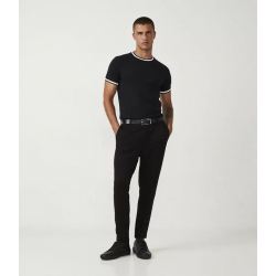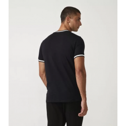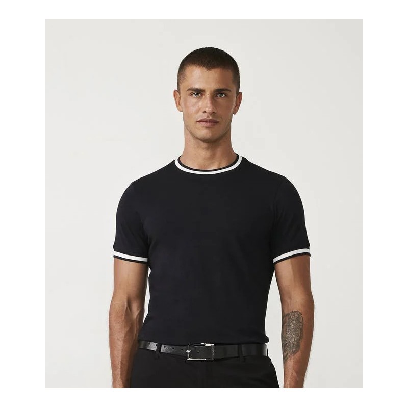 Camiseta muscle em algodão, com listras contrastantes e, ribana na gola e mangas.